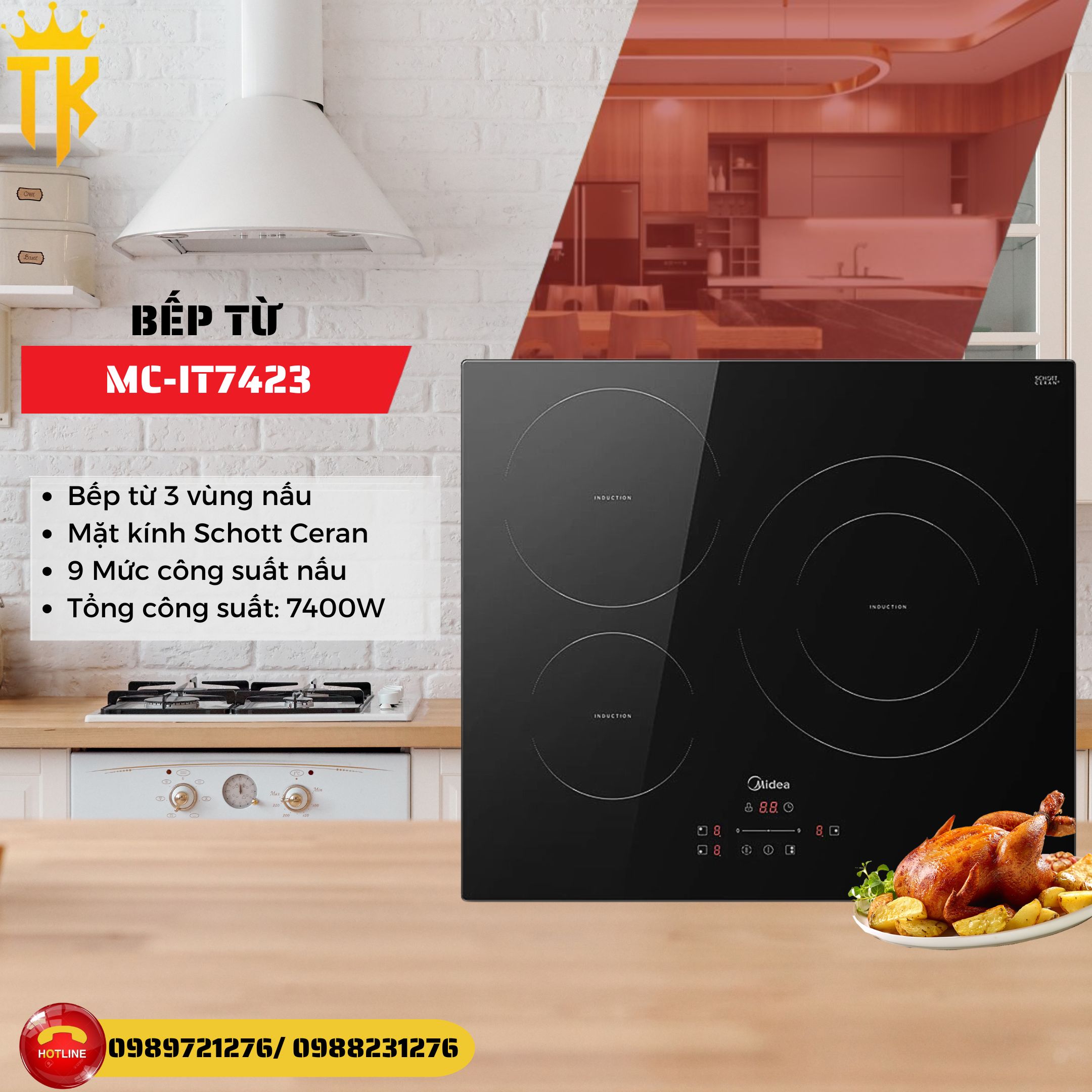 - Bếp từ 3 vùng nấu