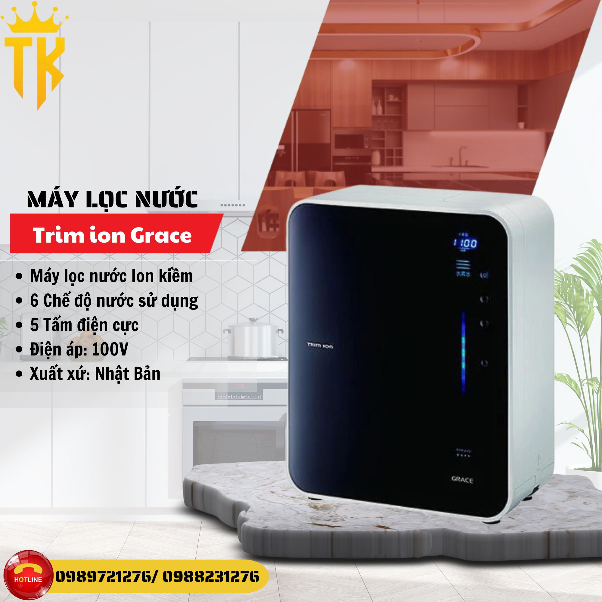 - Trim ion Grace là dòng máy lọc nước điện giải tạo nước ion kiềm với nồng độ Hydro cao lên đến 1300ppb giúp làm chậm quá trình oxy hóa, trung hòa các nhân tố có hại cho cơ thể, hỗ trợ tiêu hệ tiêu hóa hoạt động hiệu quả hơn